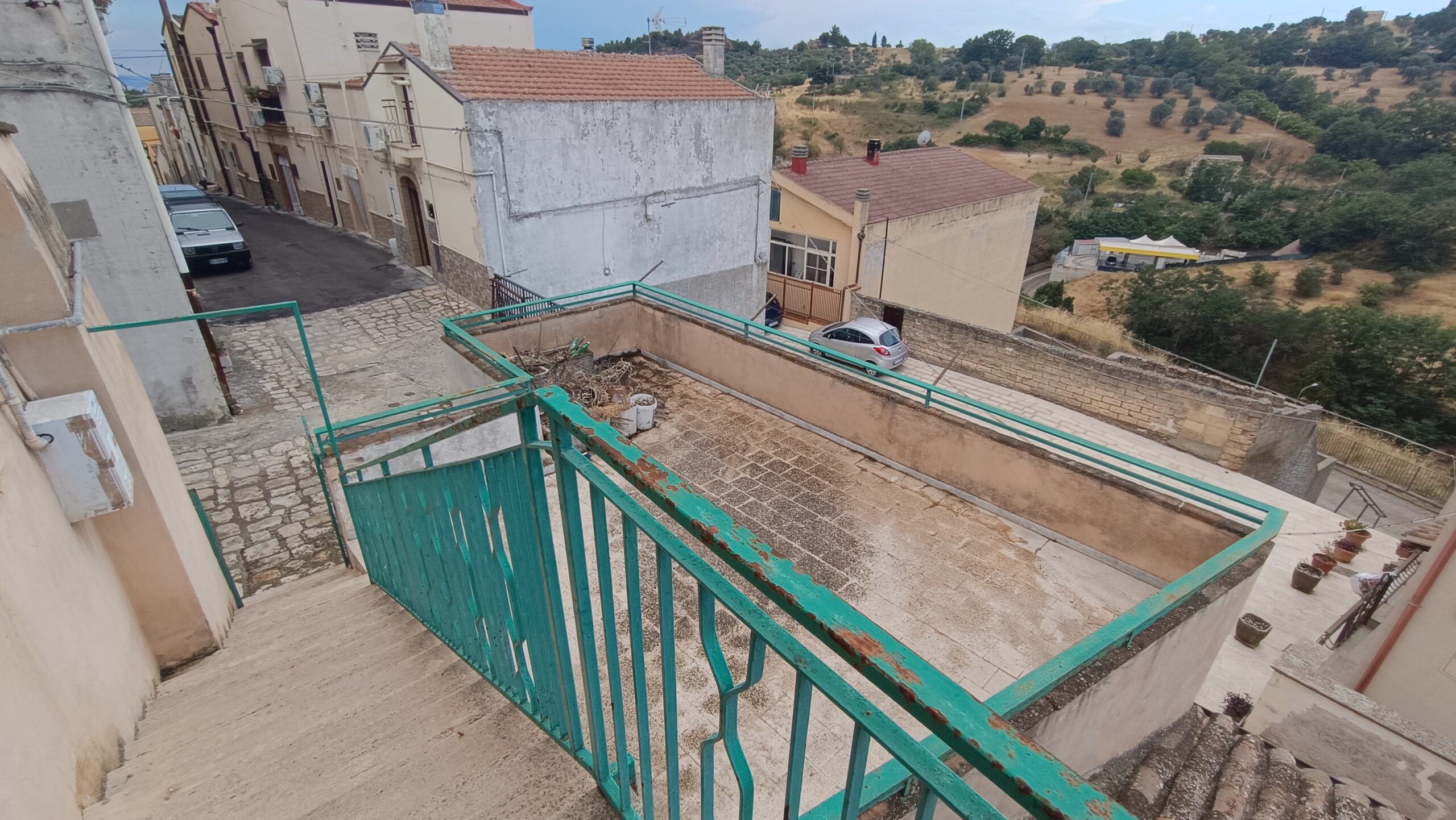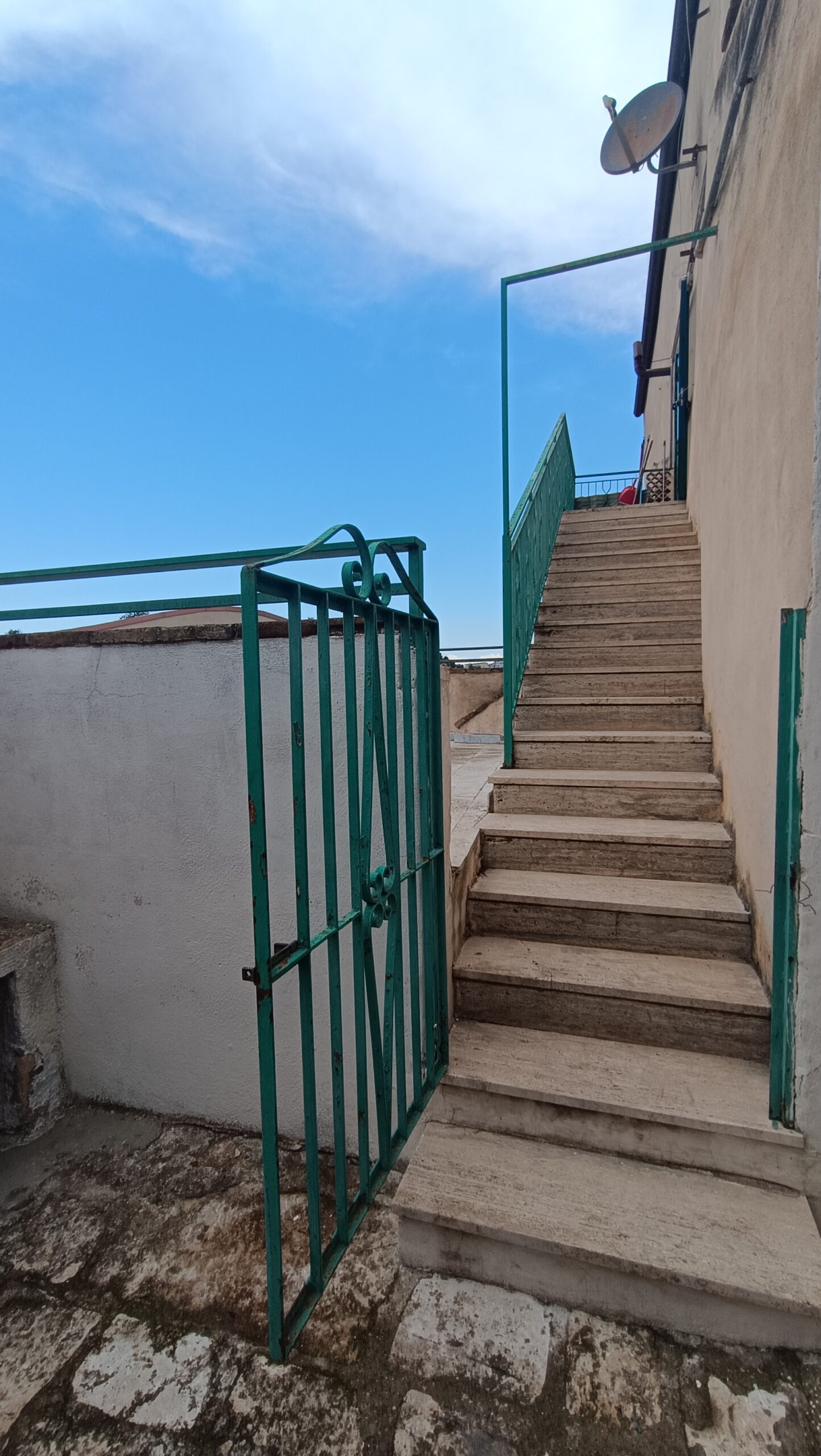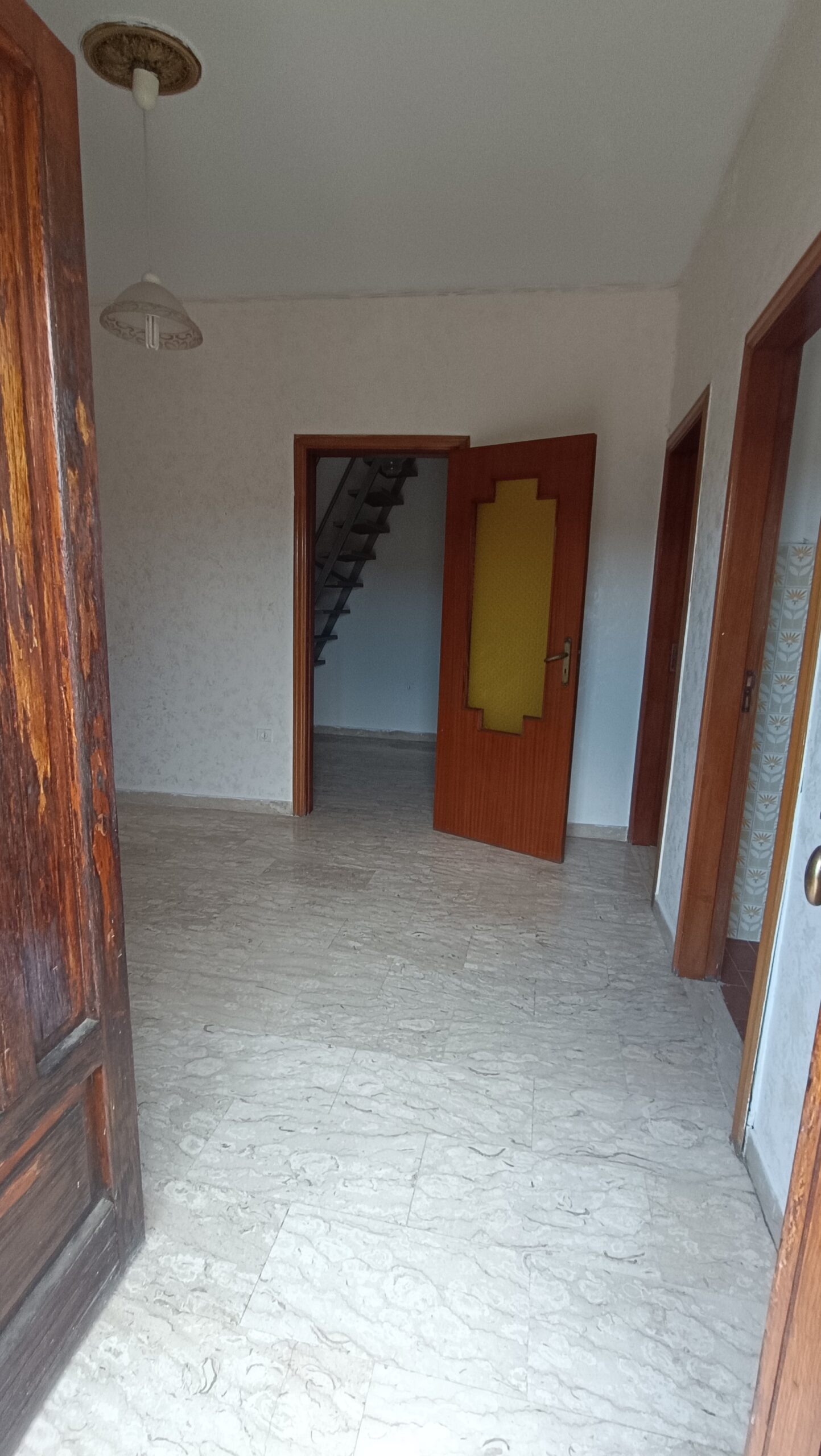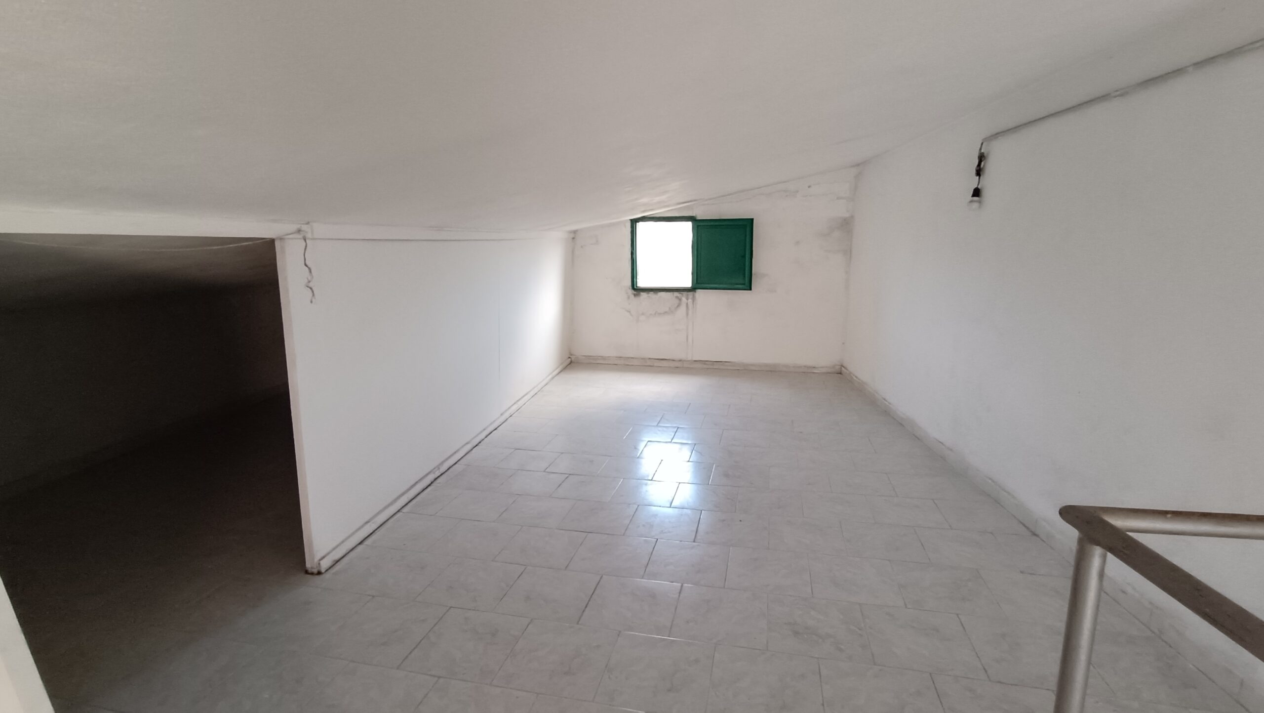 All’abitazione al primo piano si accede tramite una scala esterna e vanta un accesso ad un terrazzo esterno di 60 m²; si presenta con una superficie catastale di 86 m² e si articola a partire da un ampio ingresso, una cucina, una camera da letto e un ulteriore vano. Tramite una scala interna si accede ad un sottotetto che nella parte più alta è ad altezza uomo, e ad un ulteriore terrazzino. A completare la proprietà è presente un garage di 60 m², al di sotto del terrazzo.
