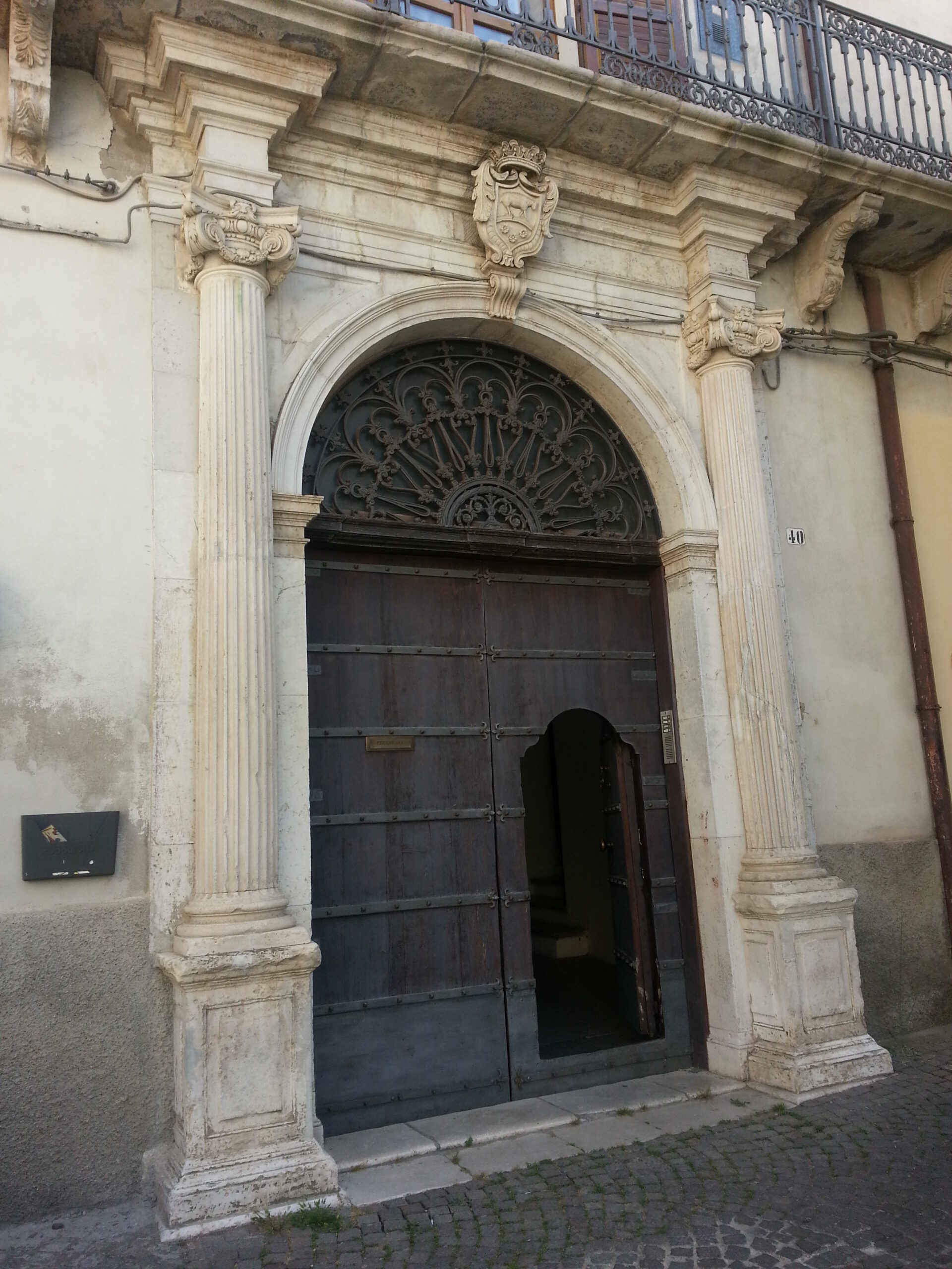 Il portone d’ingresso vanta una peculiare impronta artistica che non ha subito, fino alla data odierna, manomissioni di alcun genere esprimendo ancora tutta la sua austera bellezza.